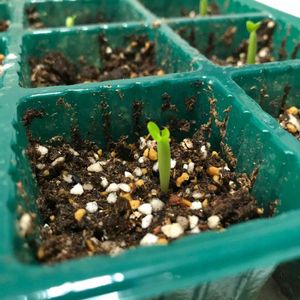 モンステラ、種子より育て中(^o^) 10個蒔いて8個発芽💕 残り2個、頑張れ〜٩( 'ω' )و