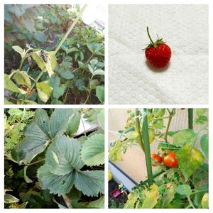 上のpicは借りてる畑の野菜。 ミニトマトは中々赤くならないですが茎は凄く伸びてます。 3日で他所の畑にお邪魔しそうになってました。 きゅうりは1日3cmと言われたので今度はジャンボになる前に 収穫出来ました。 下のpicは庭先の袋栽培のお野菜。 中玉トマト2つ目と3つ目収穫しました。 お味は去年のミニトマトの方が濃厚かも・・・雨のせいか、 そう言う品種かは分かりません。 暑くなって収穫終了したと思っていた苺に またお花が咲いていました。 2つほど気が付かず受粉させそびれました。 この品種、花粉が分かりにくくて・・・これは上手くいったかな? まだ蕾もありました。 四季なりってそんなにずっと実をつけるものなの? ちなみにランナーもどんどん出て来てますが場所もないので 苗選びは厳選しないとです。