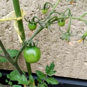 お米袋で育てているミニトマト🍅 2本の内の成長が早い方の1本。 実が増えてきました。 最近朝から鳥さんが大騒ぎ・・・ そんな心配はまだ早いけど鳥さんに負けないように 朝の見回りです。
