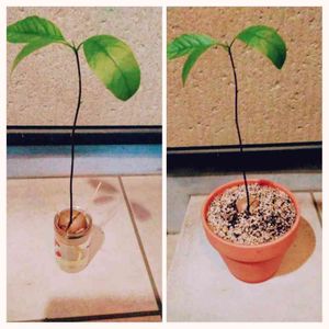 水栽培でここまできたけど限界かな・・・ と言う事で植木鉢に植え替えました。 植木鉢の深さがもう少し欲しかったかも。 この植木鉢はもうキッチンの窓辺には置けないので 植え替えと同時に玄関にお引っ越しです。