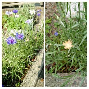 ヤグルマギクさん、まさかの4色目。 白ですね~。不思議です。 お花畑風計画は昨日の雨☔で お花がすっかり倒れてしまったので ちょっと残念な見映えとなりました。