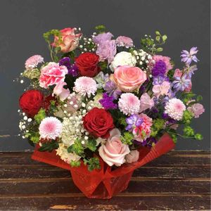 6000円おまかせアレンジメント カラー:レッド×ピンク 系列店iihana作品