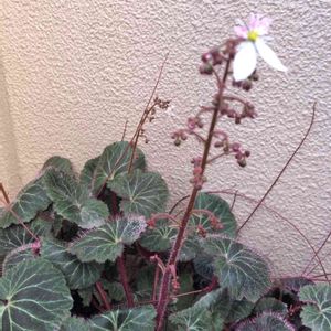 先日実家の中庭からもらってきたホウチャクソウとユキノシタです。 ホウチャクソウの育て方で調べると本当は花が付く前に植え替えするのがよかったみたい。 しんどかったかな?でもがんばって!うちの子になってね願(>_<)