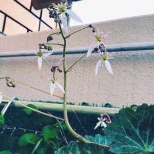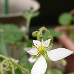 雪の下 咲きました。 地味~。😅 なんとも地味~。😅 いいでしょう、清楚な美しさです。 よく見れば可愛い。😆 虫たちは、気にしてないみたいだから、ヨシとしましょう。 しかし、よく増える…。 どうなっちゃうの~😓