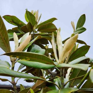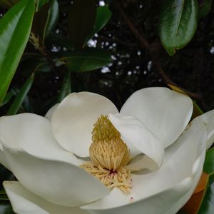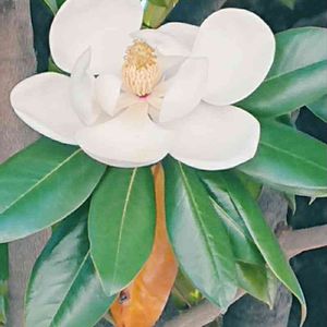 【泰山木】《モクレン科》 花言葉 「前途洋洋」「壮麗」 和名の泰山木(タイサンボク)は、花や葉の大きく立派なことを賞賛して、中国山東省中部にある名山の泰山(たいざん)にたとえたといわれます。また、大きな盃(さかずき)のような花姿から「大盃木」と呼ばれ、それが転訛したともいわれます。 英語では「Southern magnolia(南部のマグノリア)」や「Bull bay」と呼ばれます。