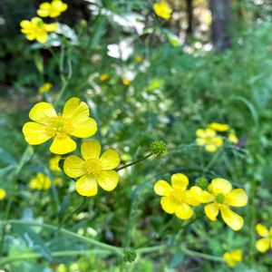 🌿ウマノアシガタ(馬の脚形) キンポウゲ科、多年草。 根生葉が、馬のひづめに似ているというのが、名前の由来。 光沢のある丸い花弁が特徴的で、緑の草地に群生している様子は、微笑ましい感じです。けれど、毒草なので、気をつけて❗️