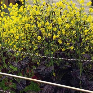 ご近所を娘と散歩していたら、菜の花畑を発見! 綺麗だなぁと思ったけど、よく見てみたら葉っぱが赤紫色!! これは何という植物なんだろう? (全体図)