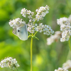 そばの白い花には、白い蝶が留っていた