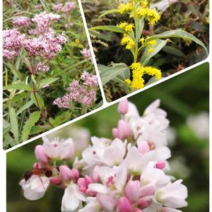 ピンクのフジバカマ🌸では無く、ヒヨドリバナ🌸 下はソバの花🌸 初見🌟そして可愛い💓💞 右上はアキノキリンソウかなぁ。