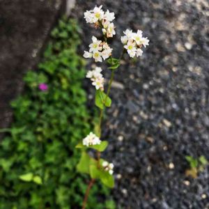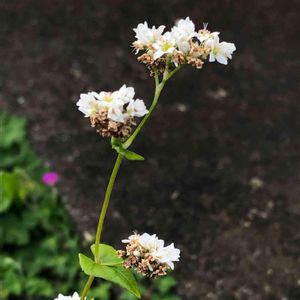 花がらが落ちずにそのまま残っている。 だいぶ経つがソバの実ができる気配はない。 やはりソバではないのかな? 近くにはご近所さんのソバ畑はあります。 うちのこの植物は、そこのソバよりかなり早く咲き出しました。 もう少し見守ろうと思っていた矢先、息子に踏まれて息絶えてしまいました。残念。