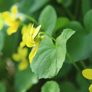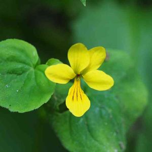 高山草原の花、今年初めて出会った2種目の黄スミレ、丸い薄っぺらな葉も独特 三ノ峰稜線