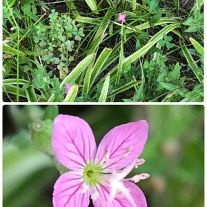 アカバナユウゲショウ’18,8,7 7:23 小さいピンクの花が揺れている。近くでみるとアカバナユウゲショウ⁉️ 4月終わり頃は1.5cm 、この花は1cm弱 他の土地で咲いてたこの花は草刈り何度もされてるので今はもう咲いてない アカバナ科マツヨイグサ属、オシロイバナが通称ユウゲショウと言われるのでアカバナユウゲショウと言われる。 朝咲いて夕方は咲き終わっている。 同じマツヨイグサ属の月見草は夕方白い花が咲き朝方はピンク色になる ヒルザキツキミソウは朝、ピンク色の花で4、5cmの大きさ。マツヨイグサは同じ科同じ属色が黄色。いずれも雌蕊の先が4裂する。