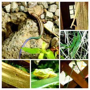 虫シリーズ番外編 捕食2態。 ◀️ジョロウグモのメスがクダマキモドキを体外消化中。上に小さなオスグモが控えています。 ▶️オオカマキリが恐らく産卵に備えて荒食い中。バッタの類の腹部しか残っていません。