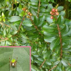 サクランボの葉にはアリを呼ぶ蜜腺があります。 アリが来てると思って写真を撮ったら紛れてアリグモもいた(・・;)