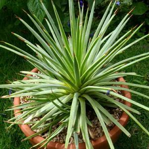 早朝、学校より台風で自宅待機✉来たから二度寝したのに、15分後に通常どおり登校✉で起こされました。 直撃した割りには大したことないなと感じるのは、私が沖縄育ちだからでしょうか。 実際、被害ゼロでした。 取り込んだ植物を定位置に戻す前に。 トゲトゲしい方々。 太陽が似合います。
