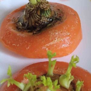ニンジンの水挿し🌱 チリチリの葉が可愛いです。 伸びたら刻んでスープに入れると美味しいです👌🏿