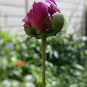 こんばんは🌆 シャクヤク「華燭の典」 まだまだ、球根は小さいので一輪だけです。 昨日の雨の時はちょっと蕾が綻んでて、朝は花弁の中は雨が溜まってました💦 昼は半分開いて、夕方、開花しました❣️ 全開では無いけど、このくらいが丁度良くて好きです❤️