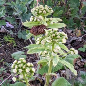 今日の収穫 ①またまた庭のふきのとう。全部採り尽くしたいけれど、そうすると翌年以降の収量が減ると聞いたのですが、お庭で育ててる方はやはり少し残してるのでしょうか? ②以前収穫した小松菜の種まきの1ヶ月後くらいに蒔いた種は、春になってから発芽しました。すぐに花になってしまったので収穫。
