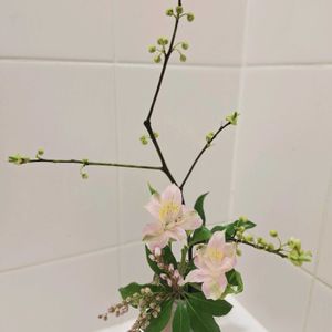 病院の生け花 アオモジとさくら色のアルストロメリア、アセビがベストマッチ 春らしい💞💞💞 毎年恒例ふきのとうを生けたくて 雪の中から掘り出してきました すでに時期おくれで巨大化してる😅