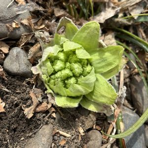 1⃣ヒメリュウキンカ 咲きました。 2️⃣バイモユリ 芽が出ました。 3️⃣フキノトウ 2週間くらいこのまま動きがありません。 来週も寒くなるようなので今年はもう少しでしょうか? 4️⃣マンゴー、日向夏 日向夏はヒヨドリの被害にあって袋をかけていたらポロっと落ちたので食べて見よう。 マンゴーの食べ頃がわかりません💦 ずっとカゴの中にいます。