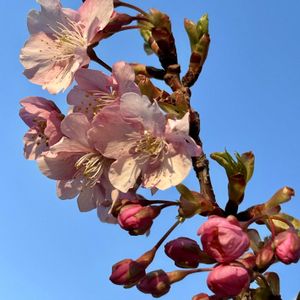 こんばんは〜⭐️ うちの河津桜🌸今日開花し始めました🙌 花芽が昨年の10月頃から出たのに 開花今年は遅かったです😅💕 うちの陽当たり悪い梅も少し前から開花🌸 毎年河津桜と同時期に咲きます♪ ふきのとうもなんだか寒そう 裏山のヒヤシンス🪻咲いていました。地植え見たの初めてかもです。