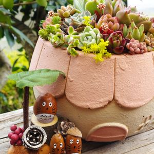 こんにちは😊 ミールンさんから頂いたハウス🏠鉢に寄せ植えしました(*^^*) 🏷毎月16日はトトロの日参加しまーす。 どんぐりのトトロちゃんも、ミールンさんからのもの🤗🎶 とっても可愛い〜\(*⌒0⌒)♪