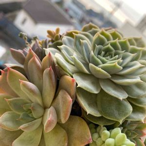 こんにちは😊 今日から、お天気くずれそうです。 雨☔が続きそうだから、対策どうしよう😱💦💦 雨の後、冷え込んだらアウト。 多肉ちゃん凍っちゃいますよね💦 picは ↗️ルエラさん、モリモリによく増えてる。 ↖️ひとさんに頂いたデビーさん群生になりました。 ⬇️これもひとさんに頂いた名前が分からない子。立派になりました。