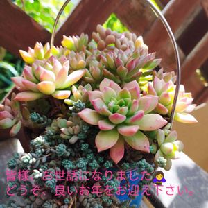 2023.1.1 元日 🎍明けましておめでとうございます🎍 今年も宜しくお願いします🥰 近くの平田ナーセリーに行って多肉のハッピートレーナーを狩いました😊 セダム多めだったけど😅 もう狩ったんかい💦って自分で自分にツッコミ入れましたよ😅 ※この画像はお店にディスプレイしてあった多肉の寄せ植えです。