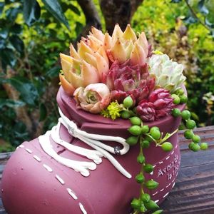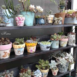 こんにちは☔ 昨晩は、かなりの雨が降って多肉ちゃん達パツパツに水を吸ってます。 2、3日は気温高めだから大丈夫かな✋(´ᴖωᴖ`) この前のトロピカルガーデンの苗で、ミールンさんから頂いてた、可愛い鉢に寄せてみましたよ〜\(*⌒0⌒)♪💕