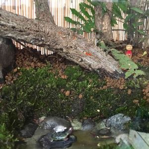 お出かけ📸投稿。 こちらは叔父さんの趣味、置いてある水槽を良くみると苔を使った お庭が❣️ 池には亀がいて…可愛いすぎる (๑′ᴗ‵๑)和風なのも良いなぁ✨✨
