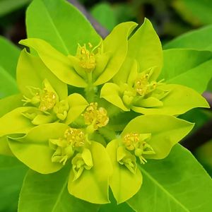 おはようございます。 近くのマンションの花壇で咲いていた ユーフォルビア。 少し風が吹いてますが、いいお天気になりそうです。