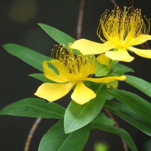 ビヨウヤナギのお花が綺麗に咲いていました🌼 飛び出した雄芯が とても綺麗✨💖 線香花火みたい🎇 散歩道にて 2022.5.26日撮影 調べました。 【ビヨウヤナギとは】 ・中国を原産とするキンシバイの仲間。日本の花にはない華美な雰囲気が好まれ、庭園用として広く使われる。中国名は「土糸桃」、「金糸海棠」、「土連翹」などだが、日本では「未央柳」、「美容柳」あるいは「美女柳」と表記される。 ・6月から7月にかけて咲く黄色い花が美しく、葉の形や垂れ下がる様子が柳に似ることから名付けられた。 【ビヨウヤナギの育て方のポイント】 ・温暖な地を好み、植栽適地は関東以南となる。 ・基本的には丈夫な性質を持ち、生育は容易だが、乾燥を嫌う。 ・根元からたくさんの新芽を伸ばし、株立ち状に育つが、剪定は好まず、刈り込むことで樹形を乱しやすい。 【ビヨウヤナギとキンシバイの見分け方】 ビヨウヤナギの花はキンシバイより圧倒的に大きい。また、ビヨウヤナギは、花の中にある「雄芯」の数が多い上に、花びらの外に飛び出すのが特徴。 月曜日の朝 ビタミンカラーで 元気にスタート✌️✨ 今日も素敵な一日をお過ごし下さいね🥰