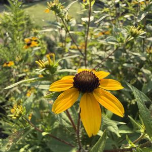 連日の猛暑にも関わらず、大きく育ったルドベキアが咲き始めた。 😊👍🎶📸