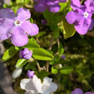 ニオイバンマツリ 紫~薄紫~白とお色直しできれい❗️ だいぶ白花になりました。 左下↙️ :カリブラコア (ペチュニアの近 縁種)