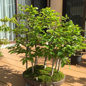 ブナの盆栽 林の様に見えたら嬉しいですね。 新芽🌱が揃ったので、葉をカットしスッキリしました。 これから暫くしたら、くりくり坊主にして新たに新芽🌱を出させます。