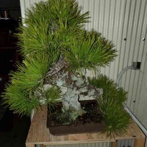 錦松 黒松の変種で高松が発祥の地です 昨夕、台風避難させる際撮影 樹皮が亀甲状に割れていて荒々しく波打ったように幹を覆っているのが特徴です