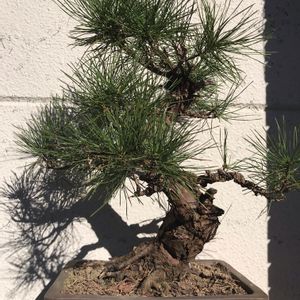 錦松の盆栽 斜幹樹形🌲 短葉と内懐に新芽が出ることを狙って、 今年出た新芽🌱を✂️しました ゴツゴツした肌が特徴的な黒松の変種です🍀 最近は貫禄が出て来たようです🤗