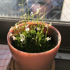 ウサギ苔のお花が咲きました🐰 今年はウサギ年なのでUP🎶 昨年お迎えした子を5つに分けて2つは⭐️に… 残る3つはそれぞれ蕾があります♡ あの乾燥して売ってる水苔に植えてあるのですが緑になって復活して来たのにはビックリ‼️ 苔って強いんですね〜💦 シソ目タヌキモ科タヌキモ属 四季咲き性 真っ白な花の筈が薄紫に… 調べたら寒い時はそうなるそうです😅 5月の真っ白な🐰は🏷フェリシアのウサギ苔からご覧いただけます🎶