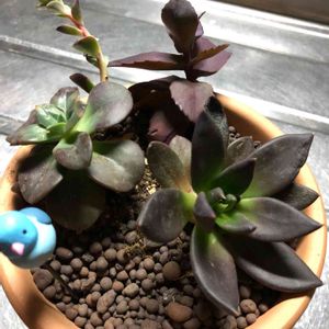 おはようございます 黒多肉🌱を寄せ植えにしました クロマと古紫、そして名前のわからない子。 古紫は去年の夏の暑さでダメになってしまったので ホームセンターで見つけたときは嬉しかった(*゚▽゚*)