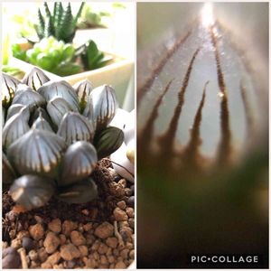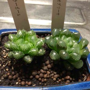 買ってしまいました (*゚▽゚*) ハオルチアのミラーボール❤️と紫オブツーサ❤️ 千円以下の予算内です 紫オブツーサが紫に見えないのですけど