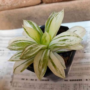 ●ススキノキ科 ツルボラン亜科 ●ハオルチア属 ●宝草錦④😻😻 この子は、他の宝草①②③とは違って白い錦の部分が割と少なめですが、バランスがとれて綺麗な個体になりますね。☝️😆😆😆🤓 蕾もひょっこり出てきてます。(笑)