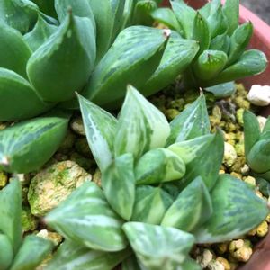●ススキノキ科 ツルボラン亜科 ●ハオルチア属 ●宝草錦②😻😻 我が家には、宝草錦が4株居てます。☝️🤓 どの子も子供が出てきていて、賑やかになってきました。😆😆😁😆 見てると癒やされます。