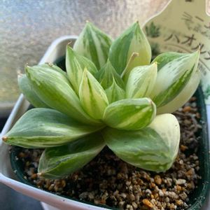 ハオルチアと売っていたため名前が分かりません(TT) 宝草錦?分かる方教えてくださいm(_ _)m 追記:宝草錦でした\(^^)/ 赤丸の所を上手く作ってみたいです。そのために勉強しないと( ・`ω・´)