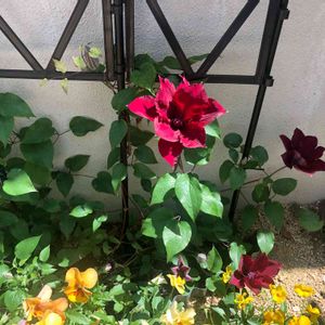 クレマチス🌿ヌビア🥀 バラたちの間から 見つけ出しました🎵
