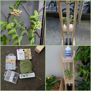 ふろ場の窓からこんにちは🤗。 ホヤ クミンギアナがゾクゾクと花座をつけてますよ。 昨日からの宿題、足踏式消毒液シュッシュッスタンドの上下に支柱を動かすしくみ、考えに考えぬいてここは園芸用ワイヤーの力に頼ることにしましたよ🥴。 どんだけ安っすいチョイスだよっ🤣。 そして5回試運転して手はぐちょぐちょ😆。 やっと 使えるヤツになりました✌️。