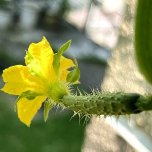 お花の付いたキュウリの赤ちゃんの後ろ姿が可愛くて、パシャリ📱 大きくなあれ〜🥒