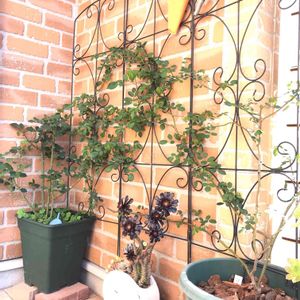 かなり明るめに撮影したますが玄関ポーチのコーネリアとジュリア、いつのまにかかなり芽吹いてきてます、そろそろ散布必要でしょうか?