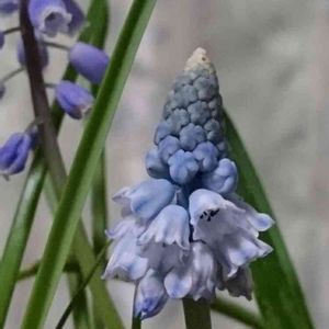 今年初めて 水栽培して 咲かせたムスカリ 癒される。 畑のはまだまだ 咲きそうもありません。