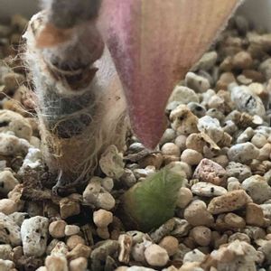 2年ほど前におまけでもらった一株に花芽らしきものがにょろんと出てきました✨🏵✨ いつの間にか子株も育っていました🌿🌸🌿🌸🌿