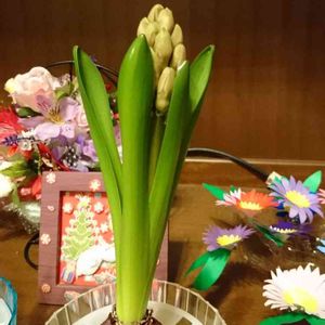 ヒヤシンスが 倒れそうと思ってたらなんと双子下からもう1つ出てきた。